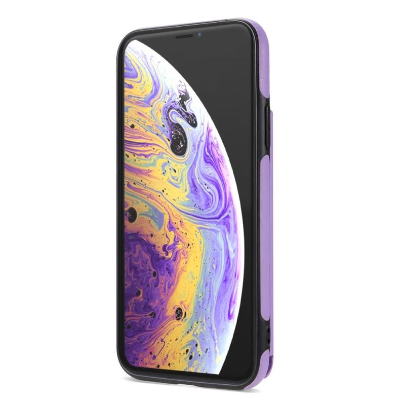 For iPhone X / XS Rhombic Dual Buckle Card Slots Phone Case with Lanyard(Purple)