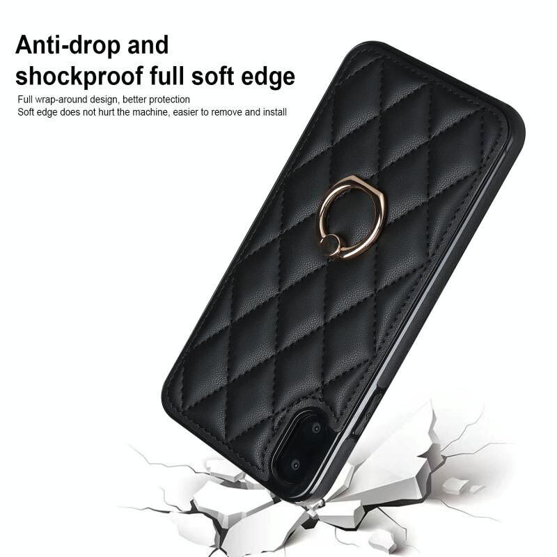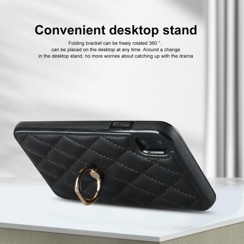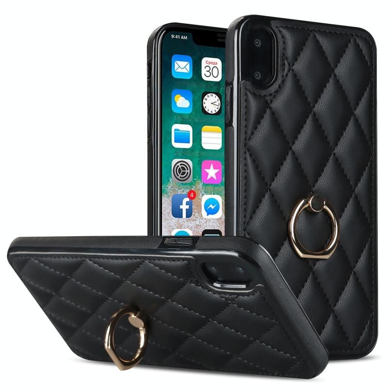 Θήκη τηλεφώνου από δερματίνη PU με ρόμβους για iPhone X / XS με δακτύλιο στήριξης (Λευκό)