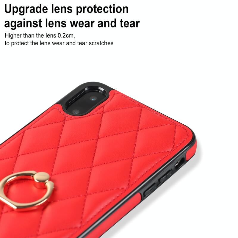 Θήκη τηλεφώνου από δερματίνη PU με ρόμβους για iPhone X / XS με δακτύλιο στήριξης (Λευκό)