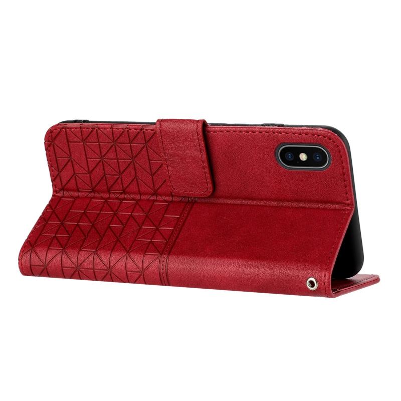 For iPhone X / XS Rhombic Texture Leather Phone Case with Lanyard(Red)