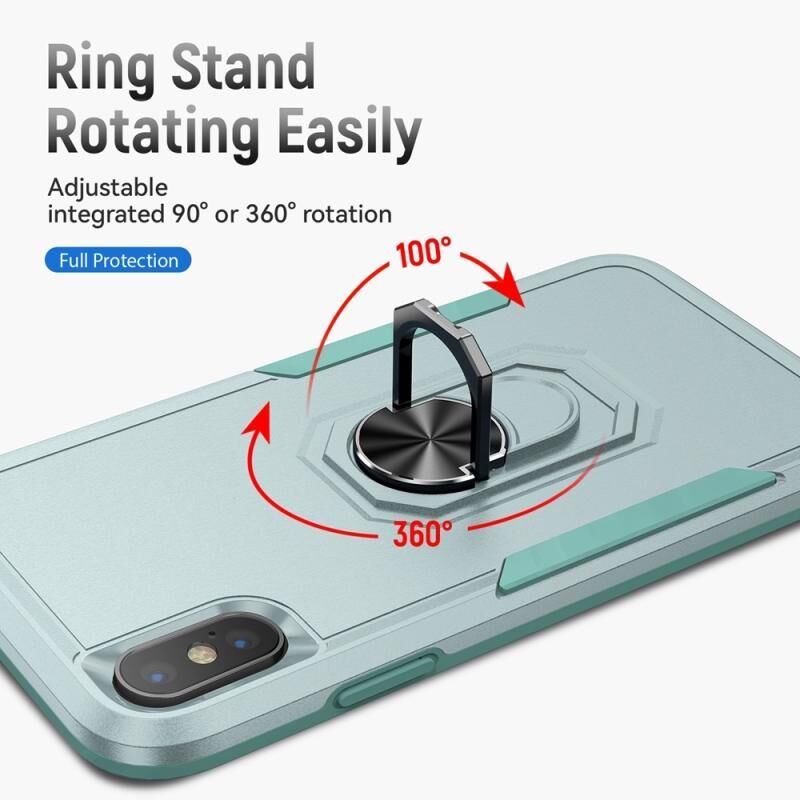 Θήκη τηλεφώνου βαρέως τύπου ανθεκτική σε κρούσεις με δαχτυλίδι στήριξης για iPhone X / XS (Λευκό)