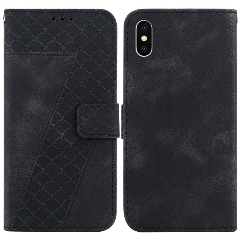 Θήκη τηλεφώνου από δέρμα με ανάγλυφο σχέδιο σε σχήμα επτά για iPhone X / XS (Μωβ)