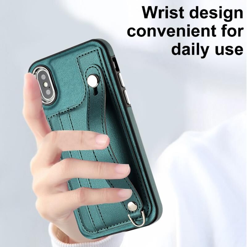 For iPhone X / XS Shockproof Leather Phone Case with Wrist Strap(Green)