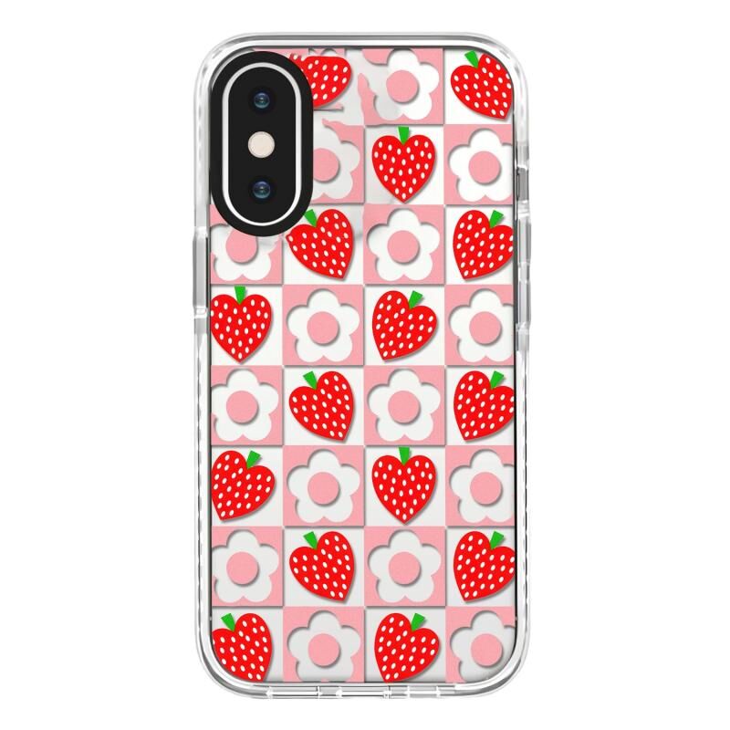 Θήκη τηλεφώνου πλήρους κάλυψης για iPhone X / XS με απλό εικονογραφημένο σχέδιο (Αγάπη, Φράουλα, Λουλούδι)