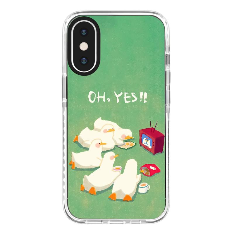 For iPhone X / XS Simple Illustration Pattern Full Coverage Phone Case(Watch TV Duck)