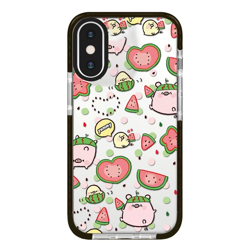 For iPhone X / XS Simple Illustration Pattern Full Coverage Phone Case(Watermelon Pig)