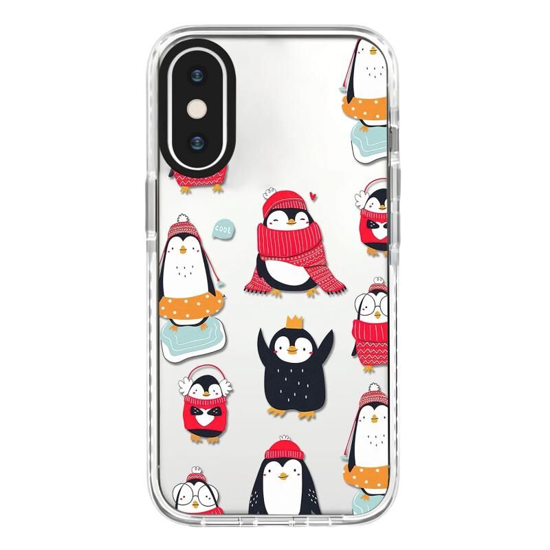 Θήκη τηλεφώνου πλήρους κάλυψης με απλό σχέδιο εικονογράφησης για iPhone X / XS (Χειμερινός Πιγκουίνος)