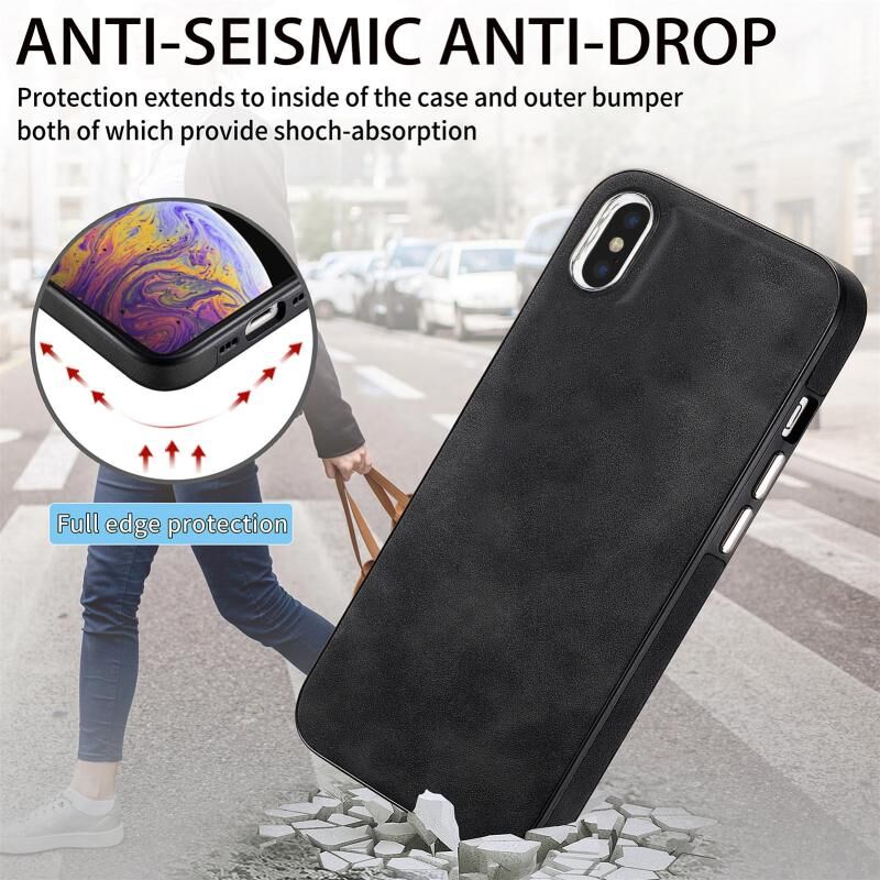 Θήκη κινητού τηλεφώνου για iPhone X / XS με αίσθηση δέρματος, ηλεκτρολυτική επίστρωση TPU, αντικραδασμική (Μαύρο)