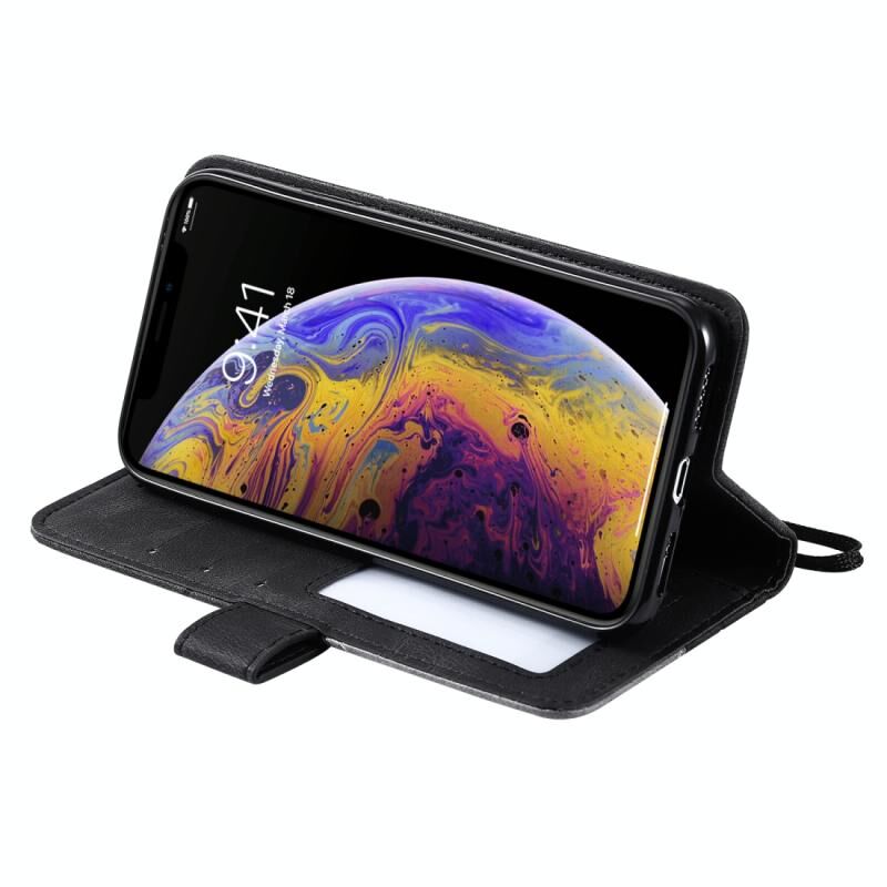 Θήκη δέρματος οριζόντιας αναδίπλωσης για iPhone X / XS με αίσθηση δέρματος, ραφές και βάση στήριξης, θήκες για κάρτες, πορτοφόλι και κορνίζα φωτογραφιών (Κόκκινο)