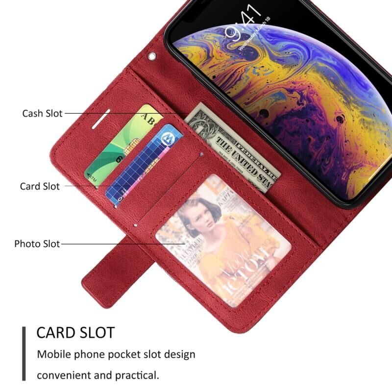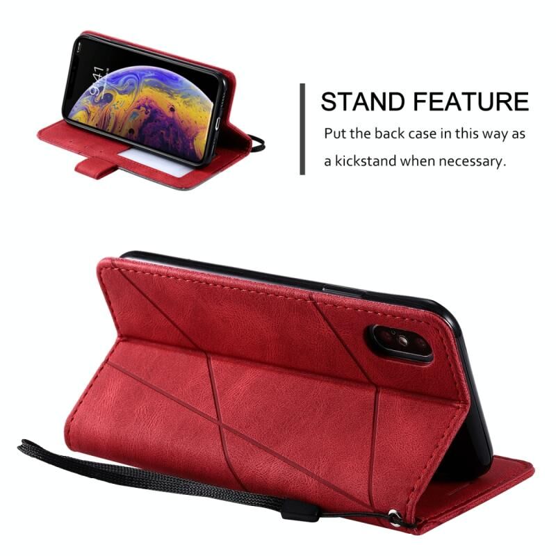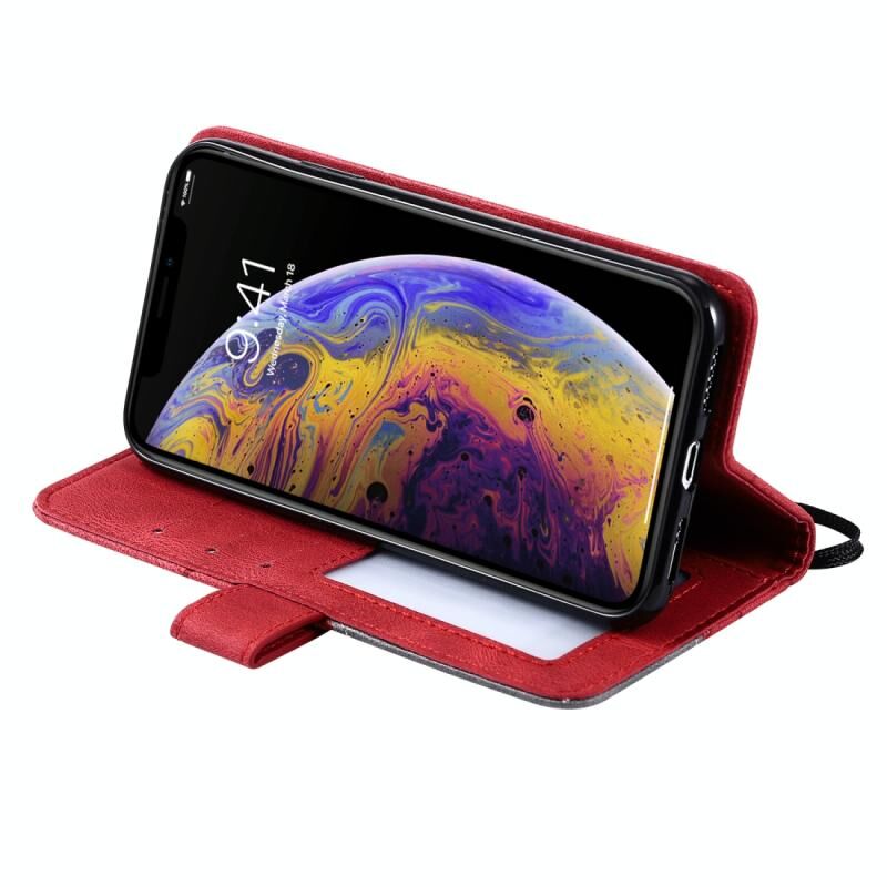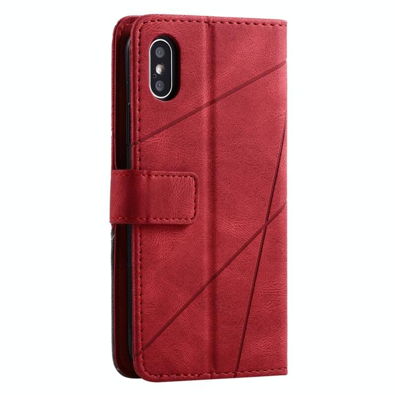 Θήκη δέρματος οριζόντιας αναδίπλωσης για iPhone X / XS με αίσθηση δέρματος, ραφές και βάση στήριξης, θήκες για κάρτες, πορτοφόλι και κορνίζα φωτογραφιών (Κόκκινο)