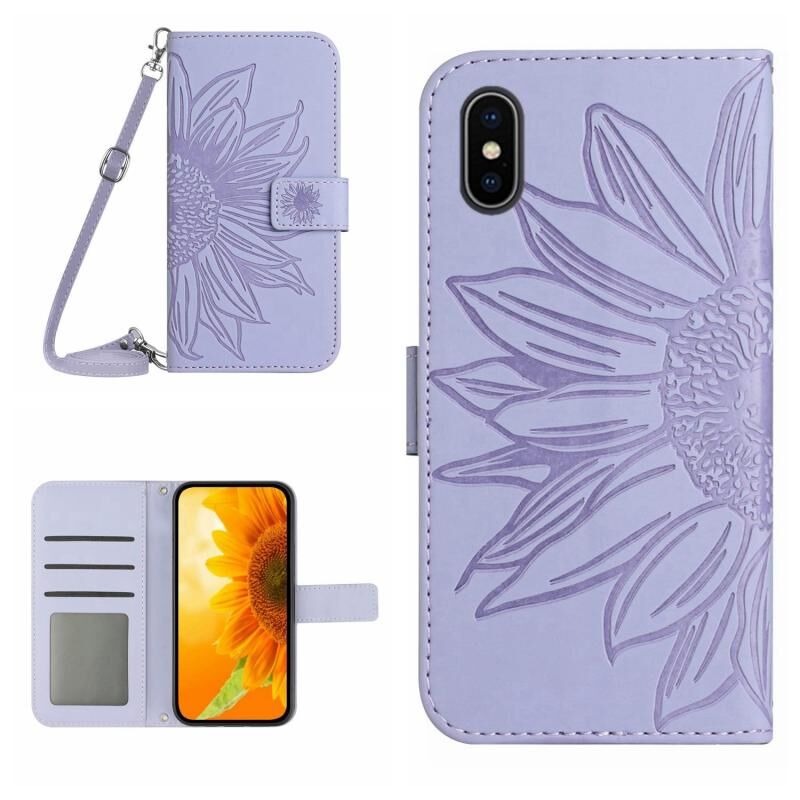 Θήκη τηλεφώνου από δέρμα με σχέδιο ηλίανθου και αίσθηση δέρματος για iPhone X / XS, με λουρί (Κόκκινο)
