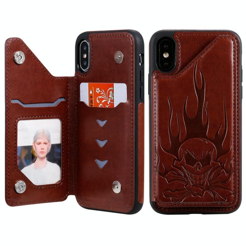 Θήκη προστασίας για iPhone X / XS με ανάγλυφο σχέδιο κρανίου, αντικραδασμική με βάση στήριξης & θήκες καρτών & πορτοφόλι (Μπλε)