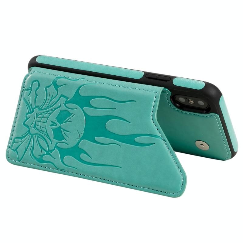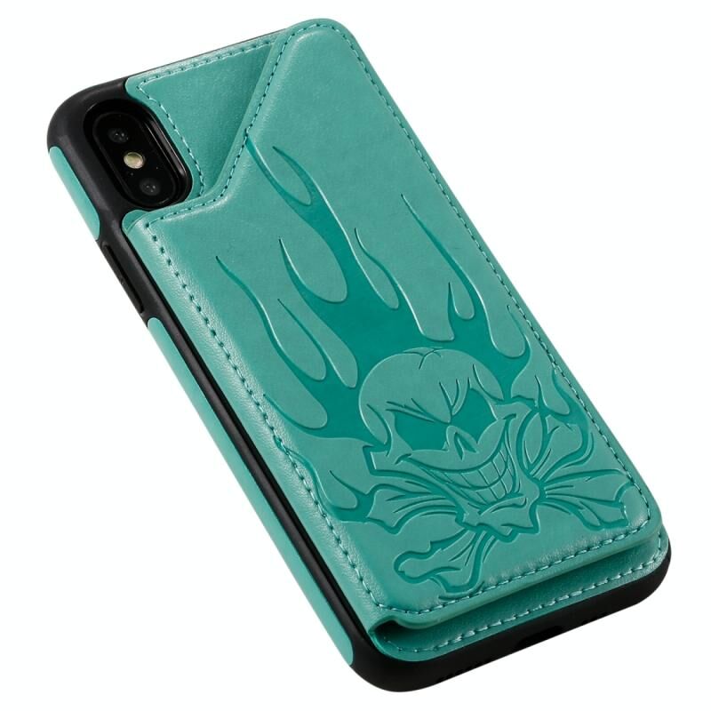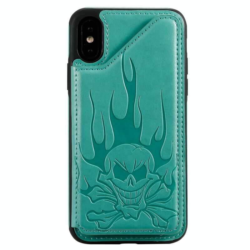 Θήκη προστασίας για iPhone X / XS με ανάγλυφο σχέδιο κρανίου, αντικραδασμική με βάση στήριξης & θήκες καρτών & πορτοφόλι (Μπλε)
