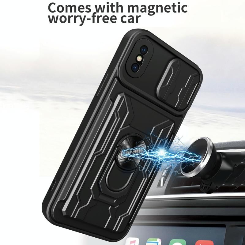 Θήκη κινητού τηλεφώνου με κάρτα και συρόμενο προστατευτικό κάμερας για iPhone X / XS (Λευκό)
