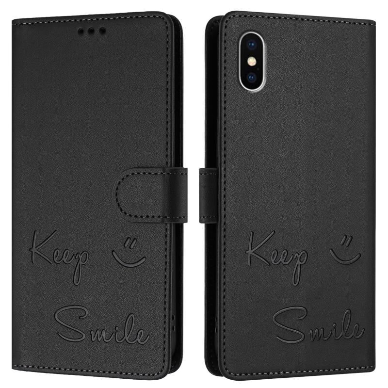 For iPhone X / XS Smile Embossing RFID Leather Phone Case(Black)