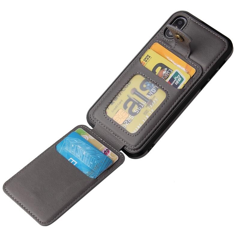 Θήκη τηλεφώνου πορτοφόλι από μαλακό δέρμα για iPhone X / XS (Γκρι)