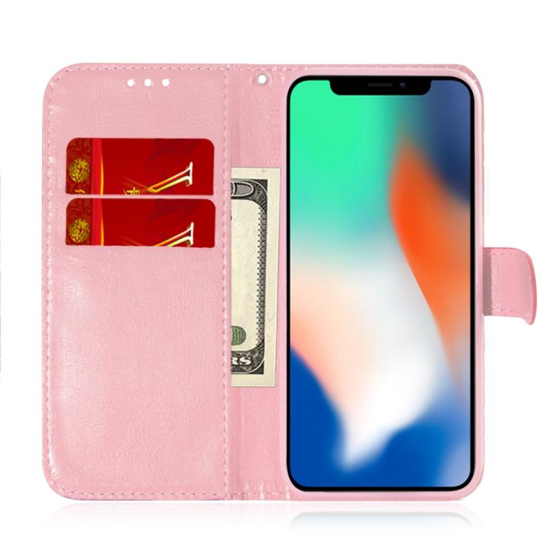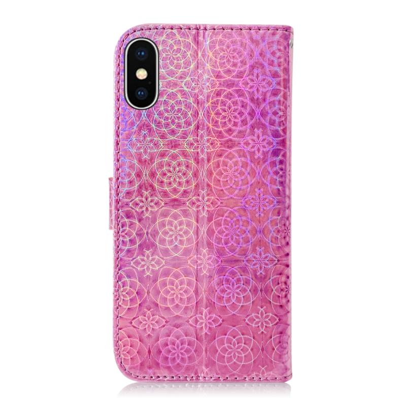 Θήκη για iPhone X / XS, μονόχρωμη, πολύχρωμη, με μαγνητικό κούμπωμα, οριζόντια, από δερματίνη PU, με βάση στήριξης & θήκες για κάρτες & πορτοφόλι & κορδόνι (ρόζ)