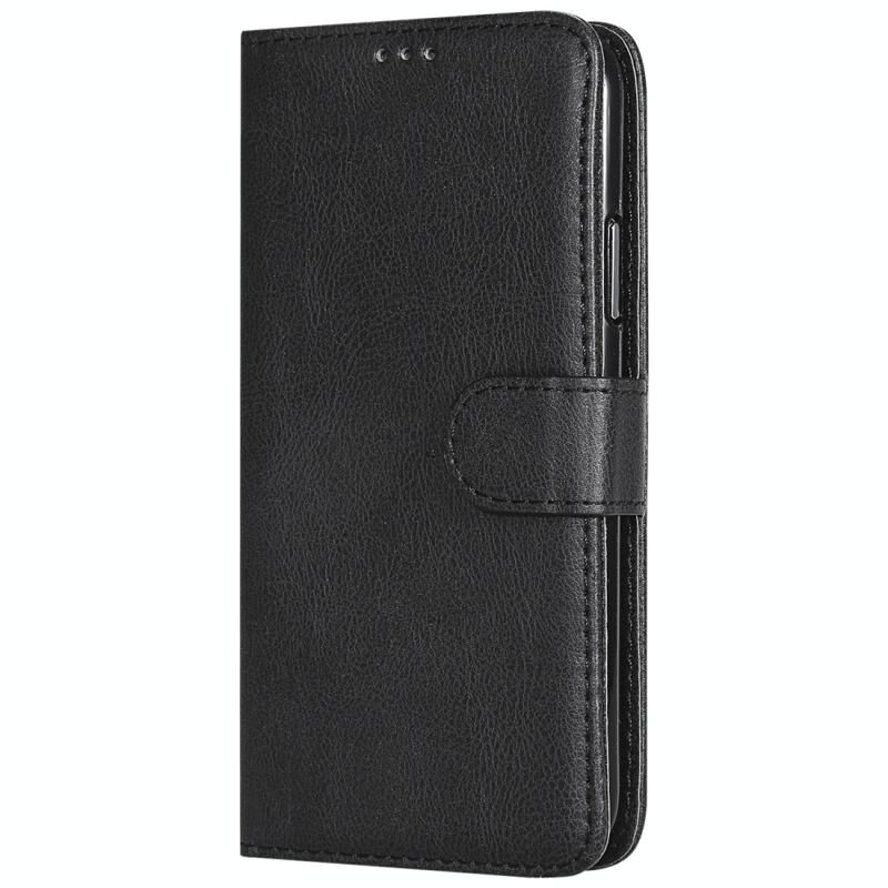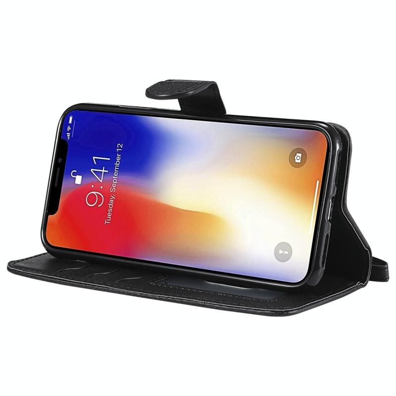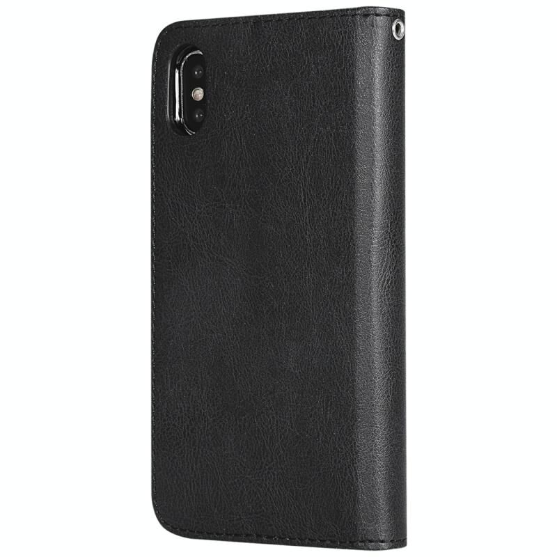 Θήκη προστασίας οριζόντιας αναδίπλωσης για iPhone X / XS σε συμπαγές χρώμα με βάση στήριξης & θήκες καρτών & πορτοφόλι & κορνίζα φωτογραφιών & κορδόνι (Μαύρο)