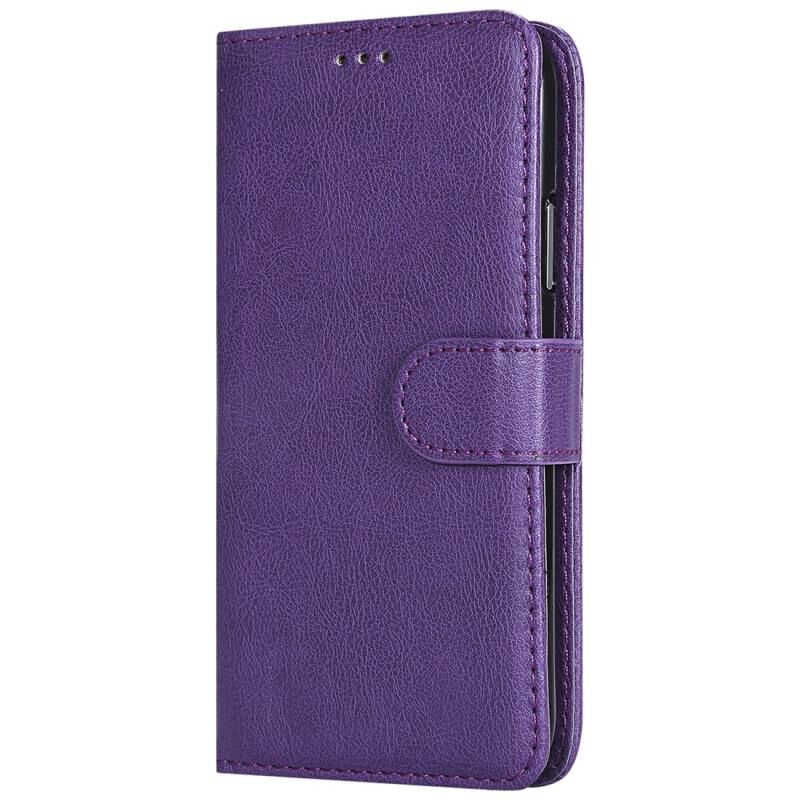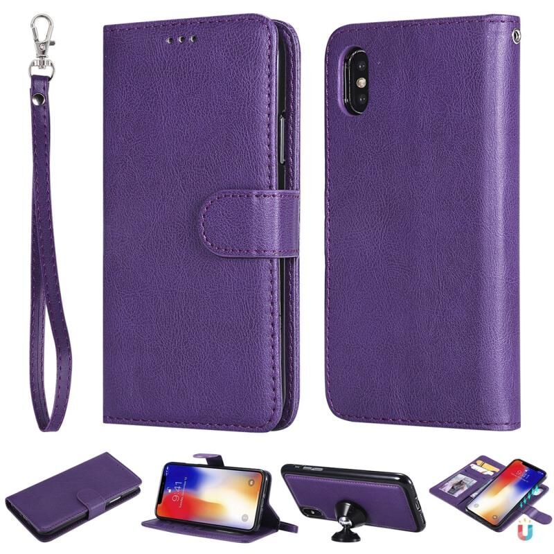 For iPhone X / XS Solid Color Horizontal Flip Protective Case with Holder & Card Slots & Wallet & Photo Frame & Lanyard(Purple)