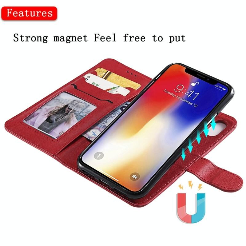 For iPhone X / XS Solid Color Horizontal Flip Protective Case with Holder & Card Slots & Wallet & Photo Frame & Lanyard(Red)