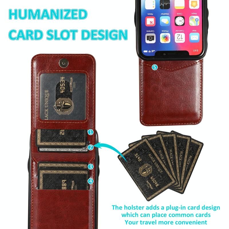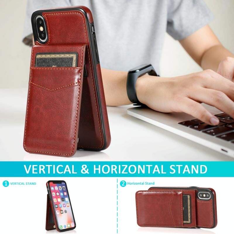 For iPhone X / XS Solid Color PC + TPU Protective Case with Holder & Card Slots(Brown)