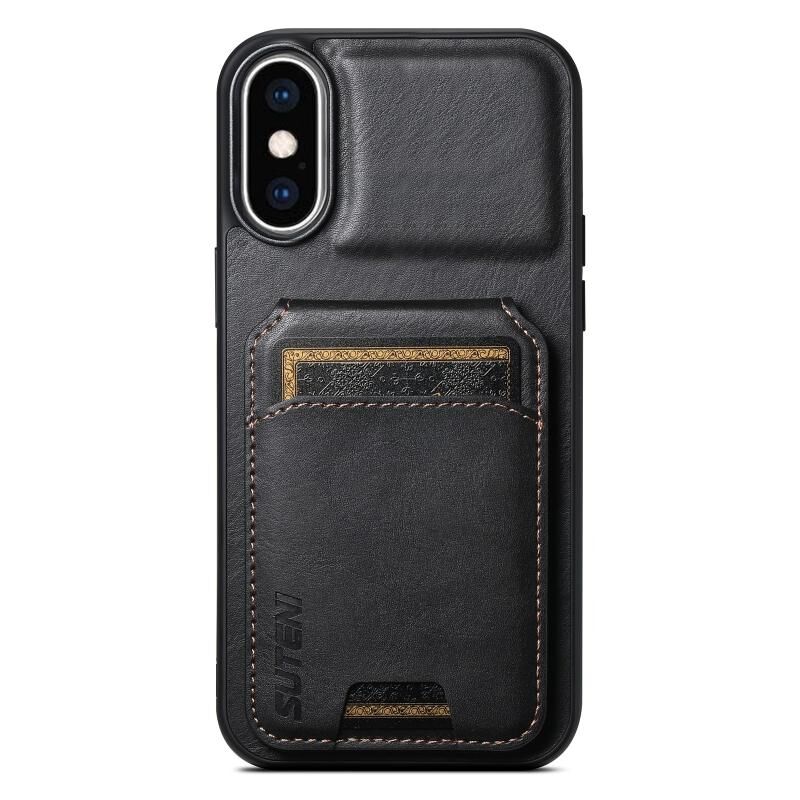 Θήκη για iPhone X / XS Suteni H02 από Δέρμα με Στήριξη και Προστασία Πλάτης (Μαύρο) (Suteni)