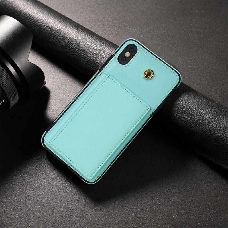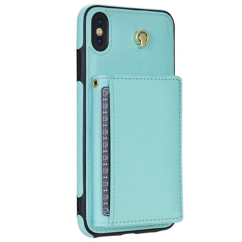 For iPhone X / XS Three Fold Card Bag Phone Case with Long Lanyard(Mint)
