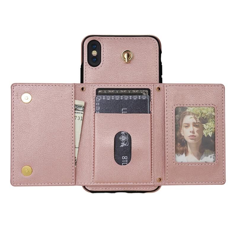 Θήκη τηλεφώνου για iPhone X / XS με τριπλή θήκη καρτών και μακρύ κορδόνι (Ροζ χρυσός)