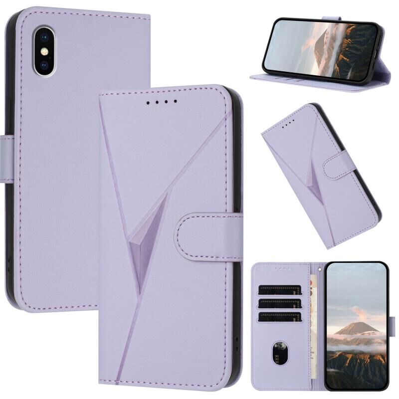 Θήκη τηλεφώνου από δέρμα με σχέδιο τριγώνου και αγκράφα για iPhone X / XS (Σκούρο Μωβ)