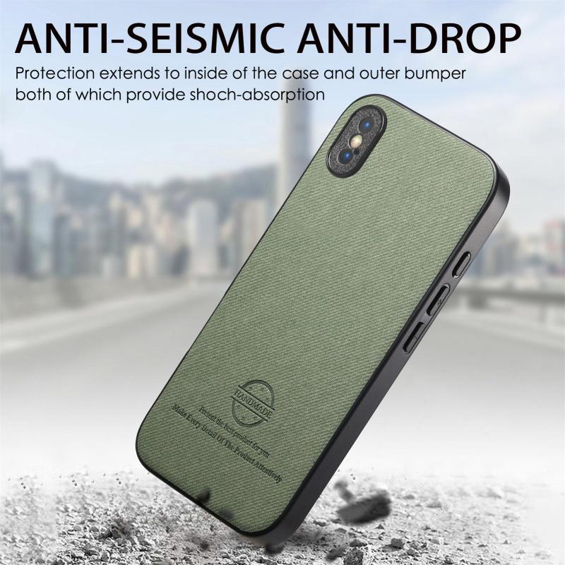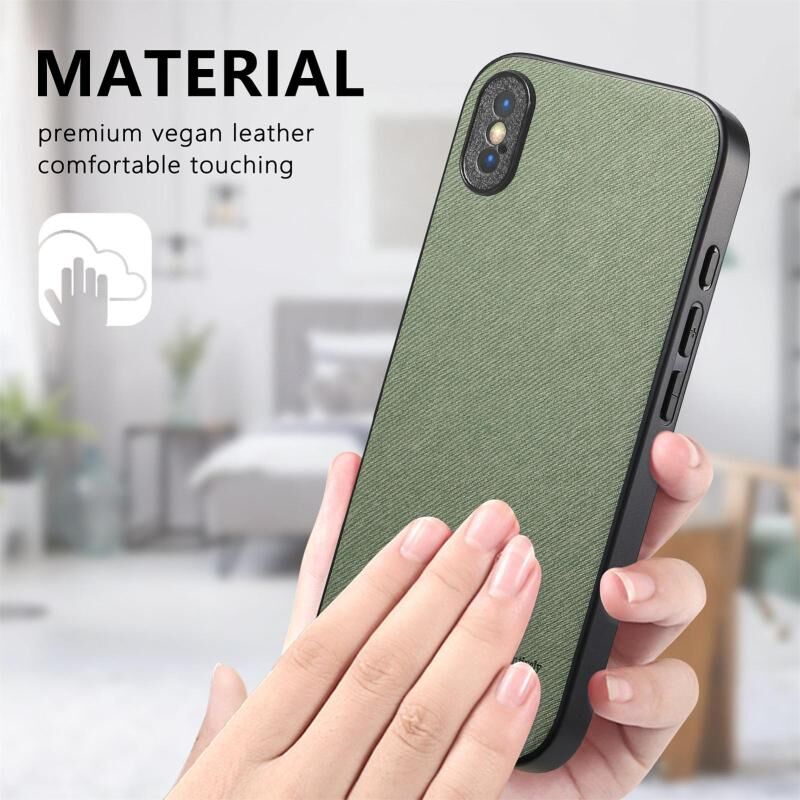Θήκη τηλεφώνου από ύφασμα Twill και δέρμα για iPhone X / XS (πράσινο)