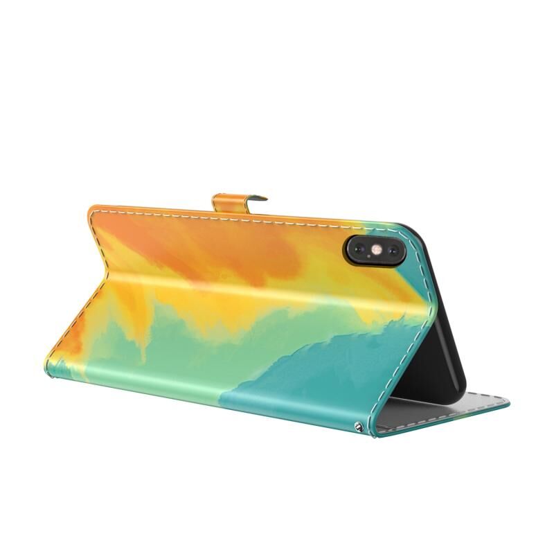 Θήκη δέρματος οριζόντιας αναδίπλωσης με σχέδιο ακουαρέλας για iPhone X / XS με βάση & υποδοχή κάρτας & πορτοφόλι (Χρώμα Φθινοπτωμένου Φύλλου)