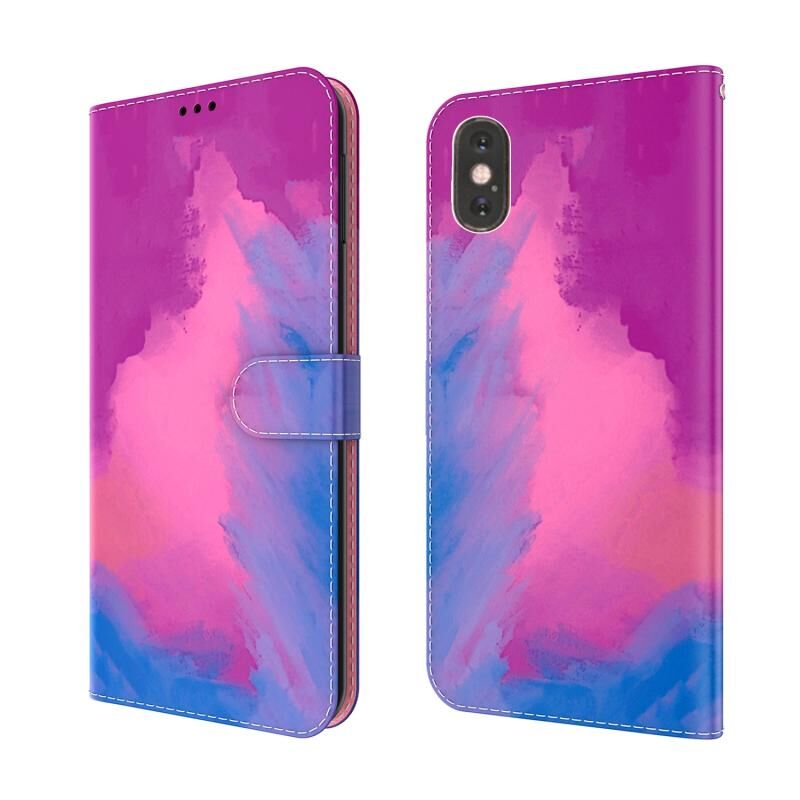 Θήκη δέρματος οριζόντιας αναδίπλωσης με σχέδιο ακουαρέλας για iPhone X / XS με βάση & υποδοχή κάρτας & πορτοφόλι (Κυανό Πράσινο)