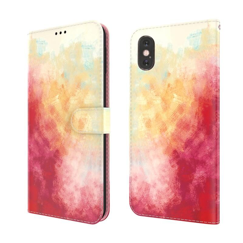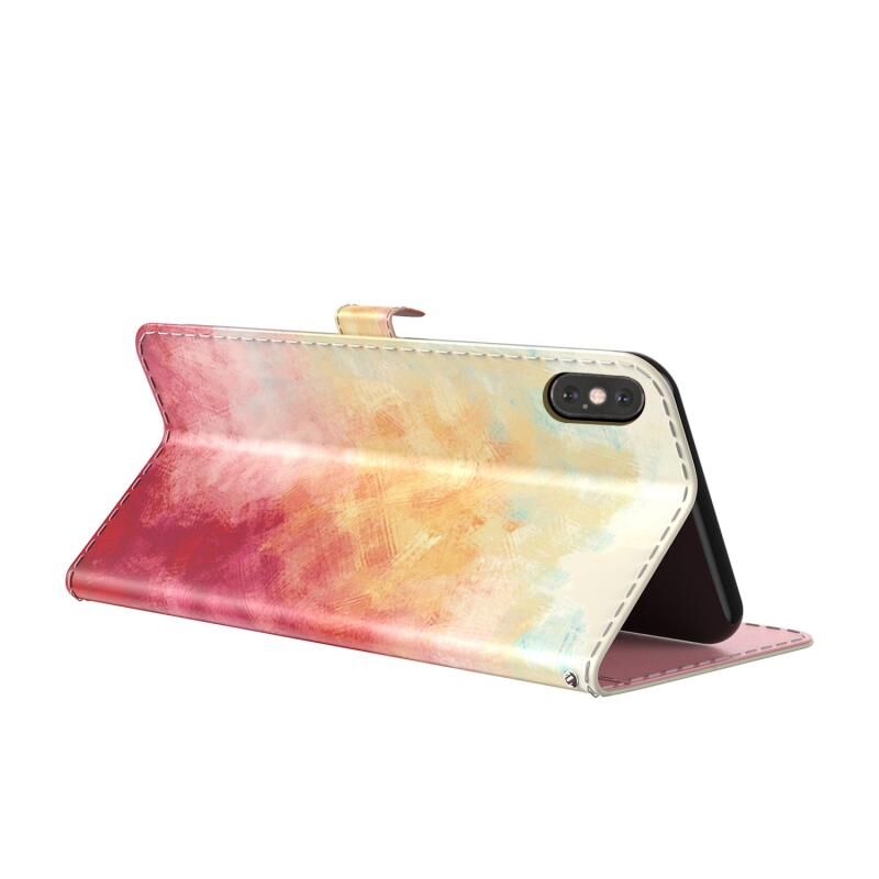 Θήκη δέρματος οριζόντιας αναδίπλωσης με σχέδιο ακουαρέλας για iPhone X / XS με βάση & υποδοχή κάρτας & πορτοφόλι (Ανοιξιάτικη Κερασιά)