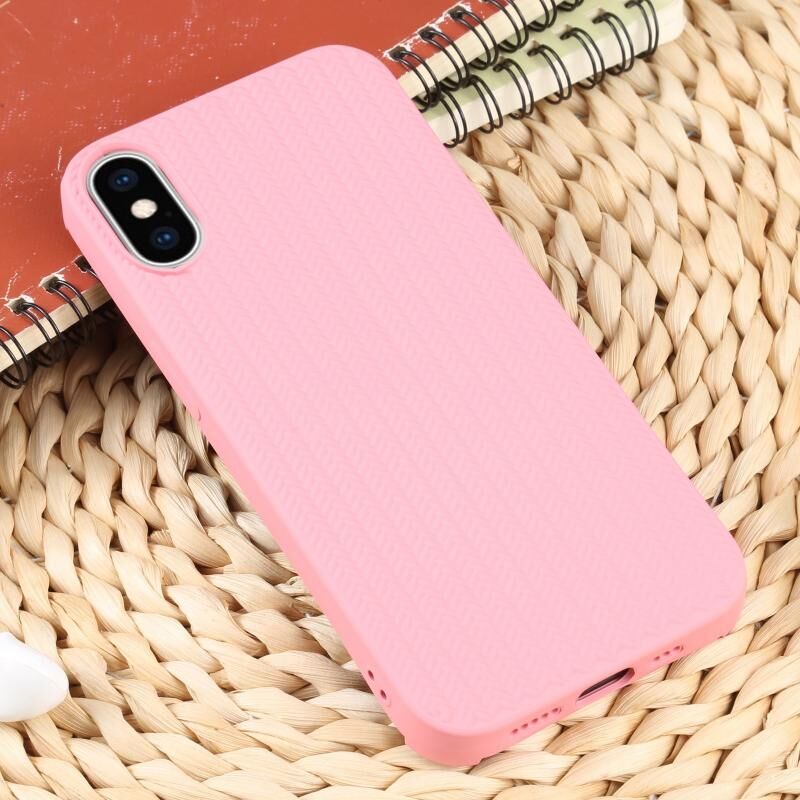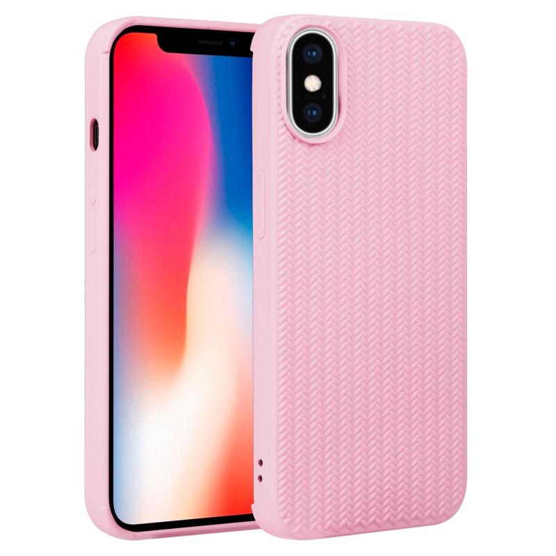 Θήκη σιλικόνης για iPhone X / XS με υφή ύφανσης (ρόζ)
