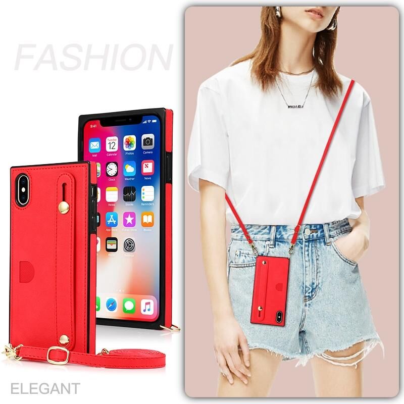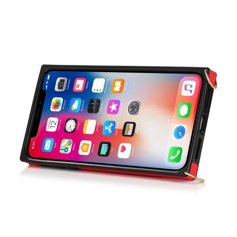Για iPhone X / XS Λουρί καρπού Θήκη προστασίας από PU+TPU αντικραδασμική με λουρί crossbody, βάση στήριξης & θήκη για κάρτες (Μωβ)