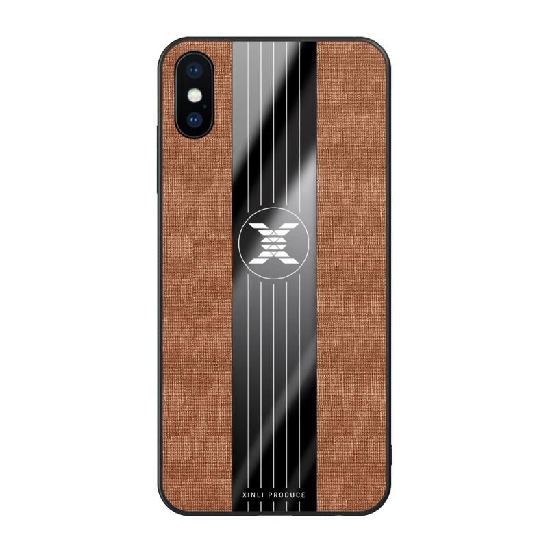 Θήκη προστασίας TPU με υφή ραφής, αντικραδασμική, για iPhone X / XS (XINLI) (Καφέ) (XINLI)