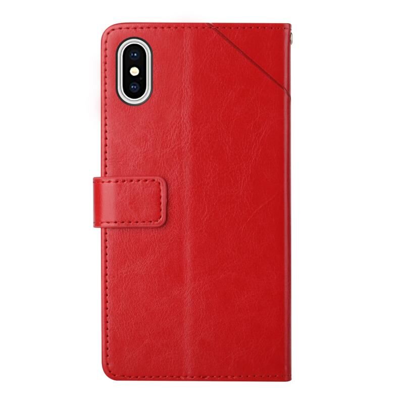 Θήκη τηλεφώνου από δέρμα με οριζόντιο άνοιγμα για iPhone X / XS με ραφή Y, με βάση στήριξης & θήκες για κάρτες & πορτοφόλι & κορνίζα φωτογραφιών (Κόκκινο)