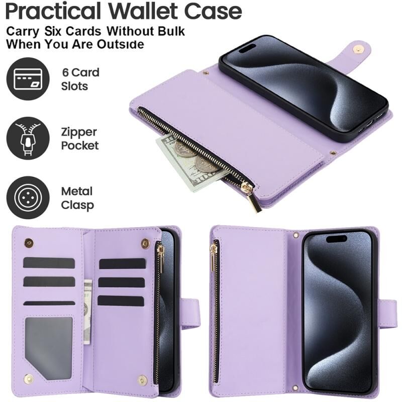 5. Multi-card Wallet Function: multiple card slots and zipper wallet pockets, cash compartments can store your credit cards and daily small bills.