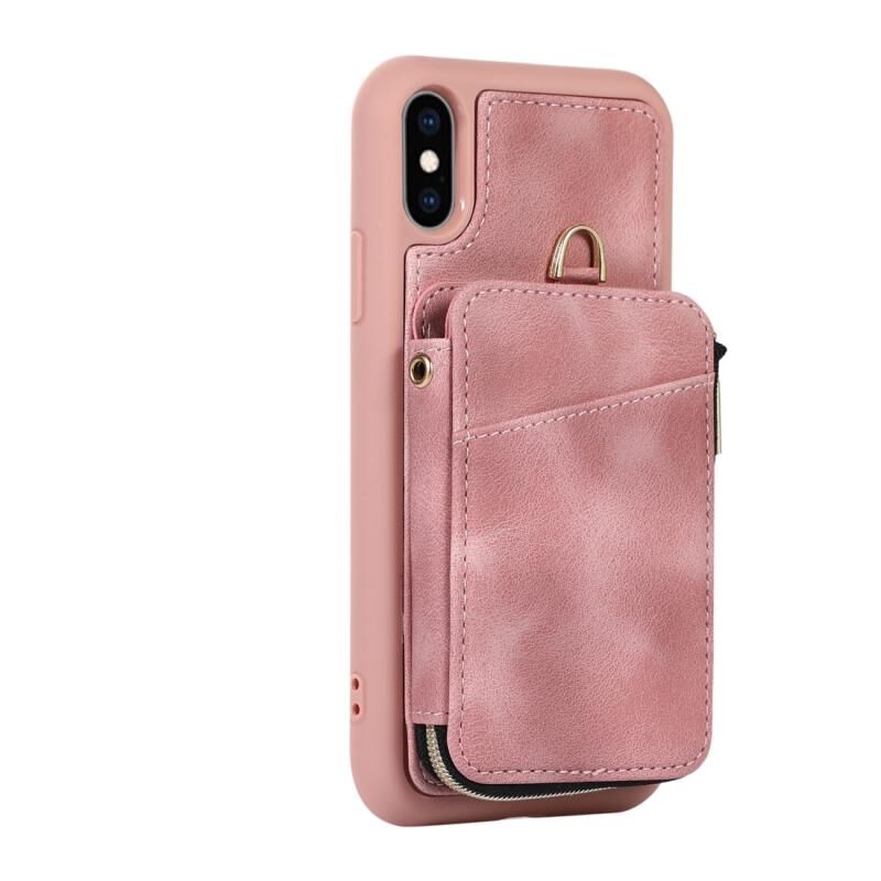 For iPhone X / XS Zipper Card Bag Back Cover Phone Case(Pink)