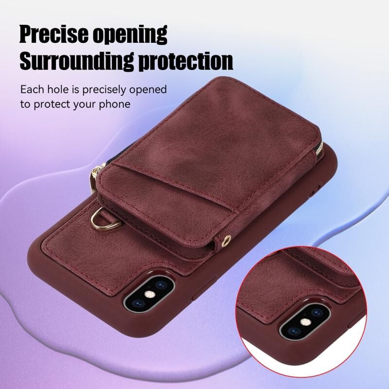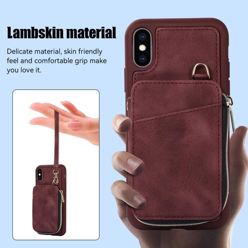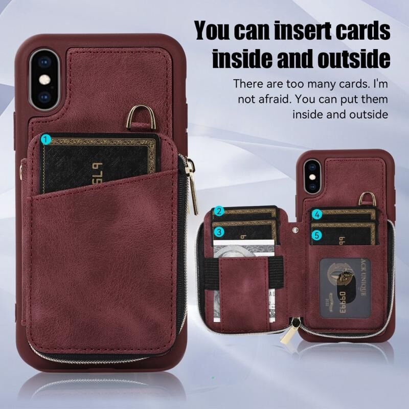 For iPhone X / XS Zipper Card Bag Back Cover Phone Case(Wine Red)