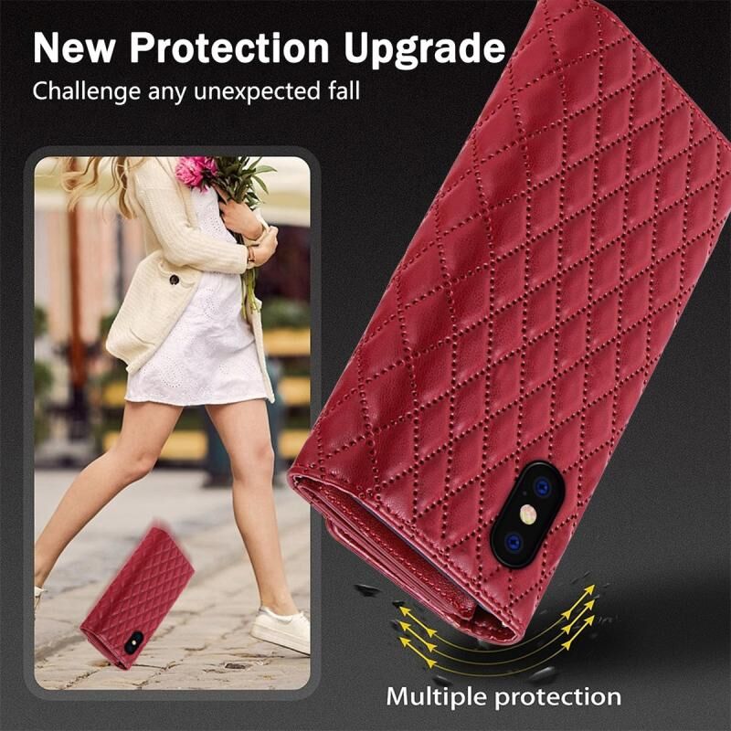 Θήκη τηλεφώνου από δέρμα σε σχήμα ρόμβου με φερμουάρ και πολλαπλές θήκες για κάρτες για iPhone X / XS (Μαύρο)