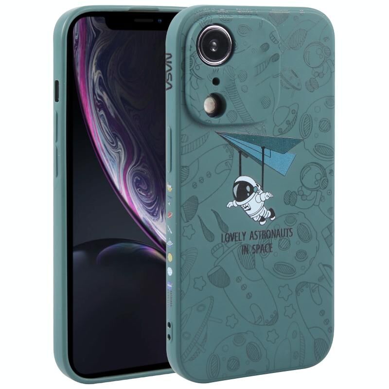 Θήκη τηλεφώνου για iPhone XR, σιλικόνης, με σχέδιο αστροναύτη και ευθείες άκρες (Όμορφος αστροναύτης - Πράσινο)