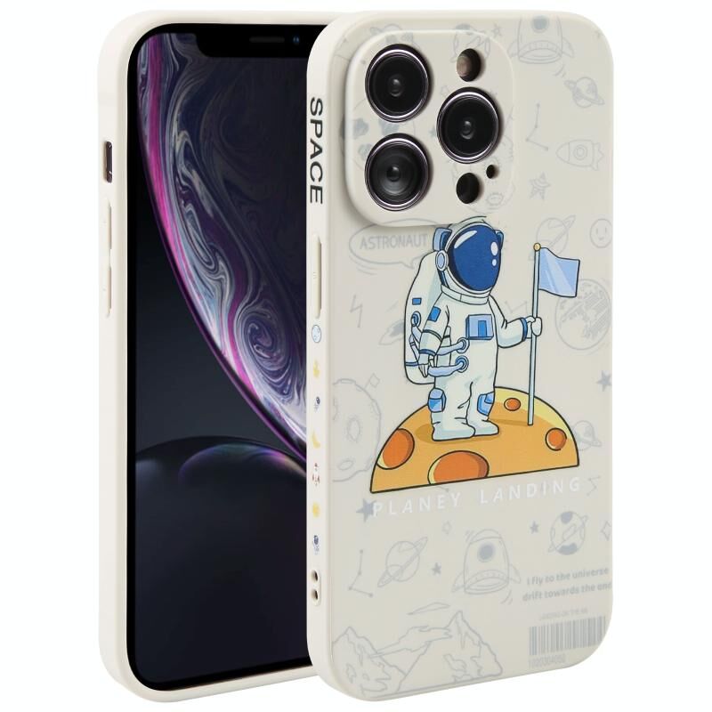 Θήκη τηλεφώνου για iPhone XR, σιλικόνης, με σχέδιο αστροναύτη, ευθείες άκρες (Αστροναύτης Άρη - Μαύρο)