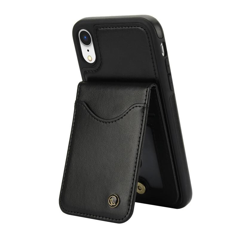 Θήκη τηλεφώνου AwQuer κάθετη με κάρτες και φλις από δέρμα για iPhone XR (Μαύρο) (Awquer)