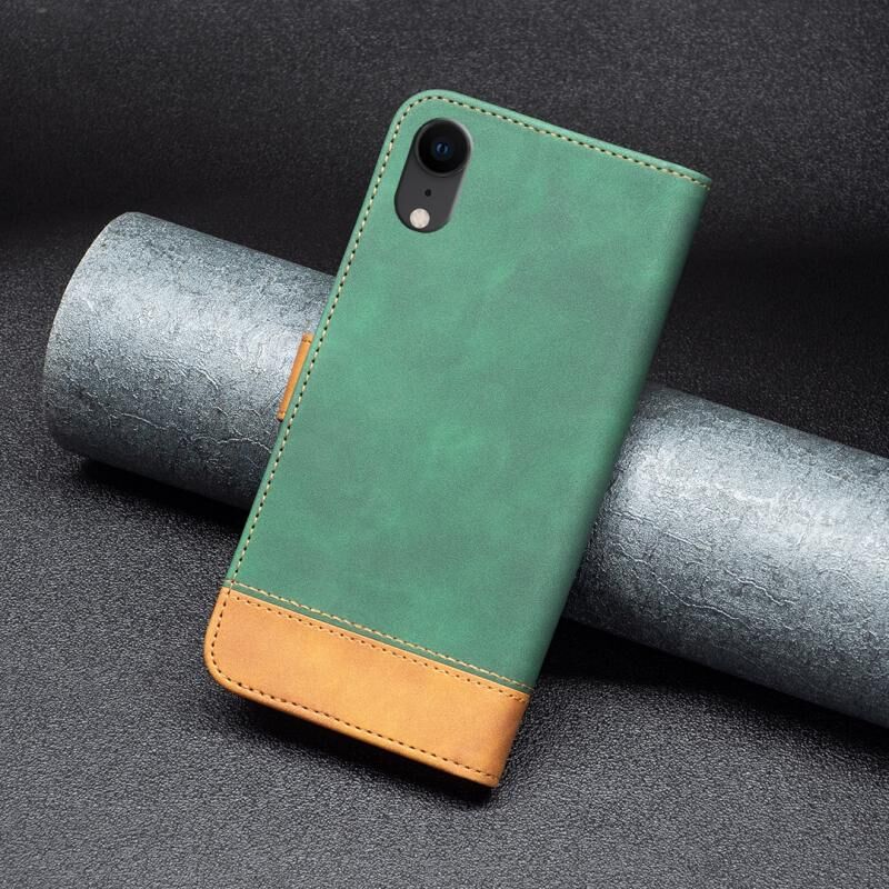 Θήκη τηλεφώνου δερμάτινη με αίσθηση, για iPhone XR BF11, σε πράσινο χρώμα, με ακριβή αντιστοίχιση χρωμάτων.