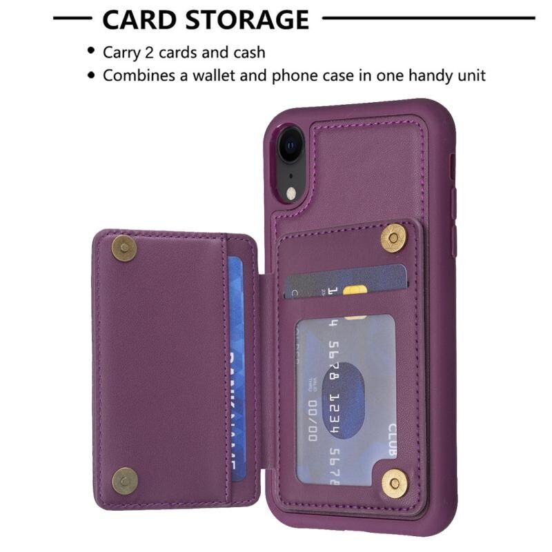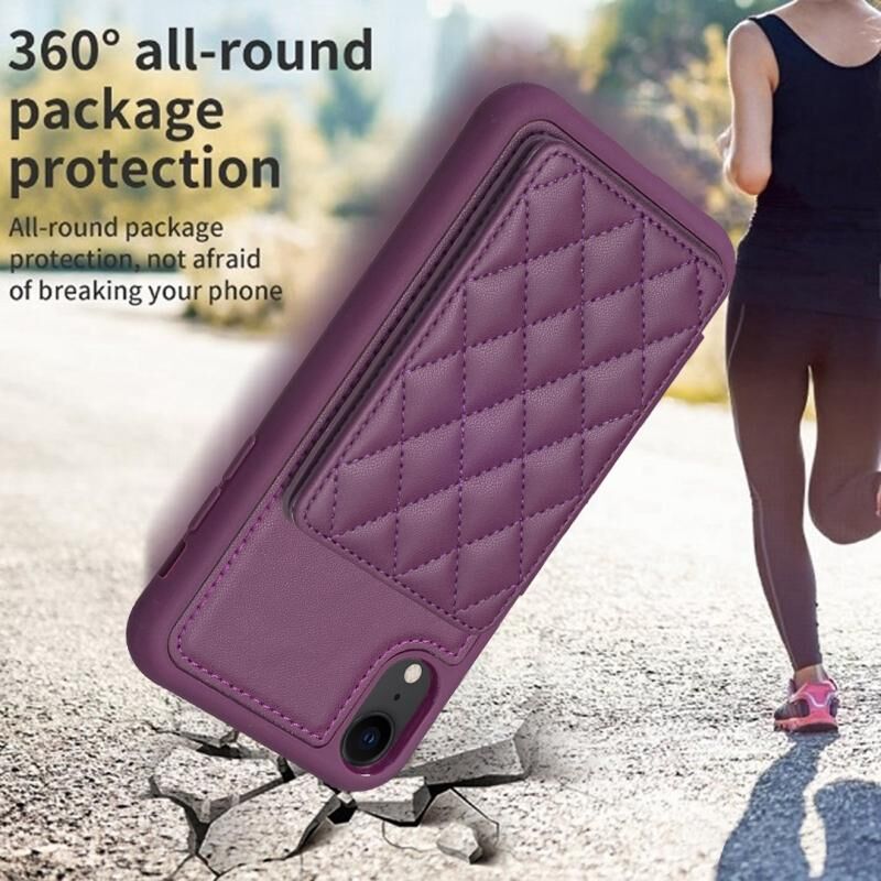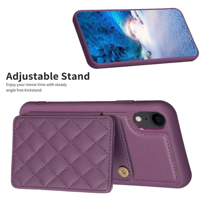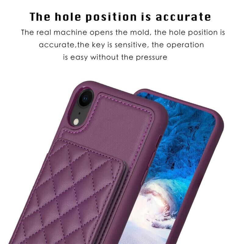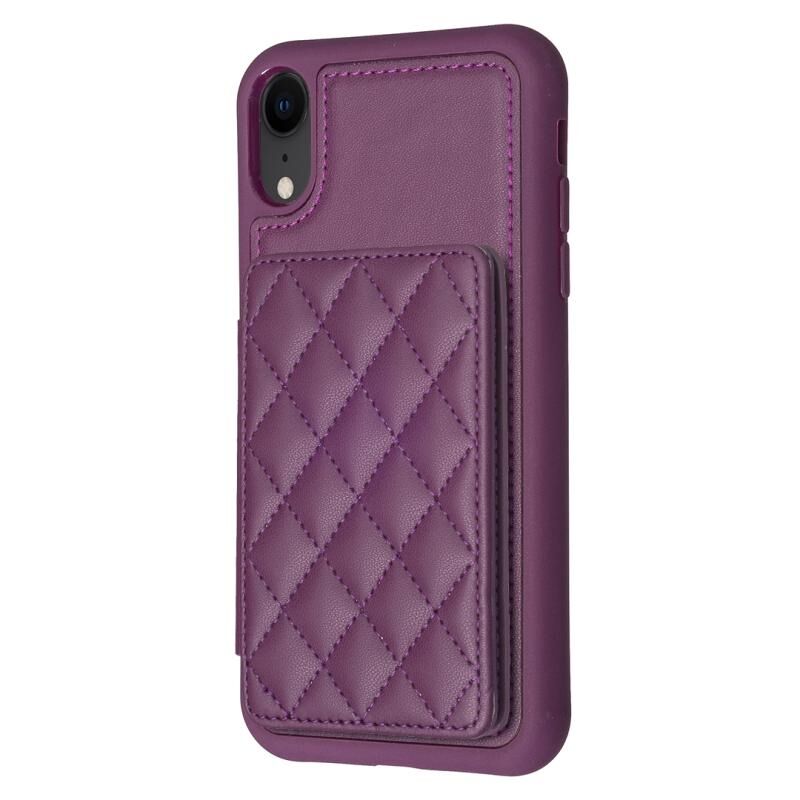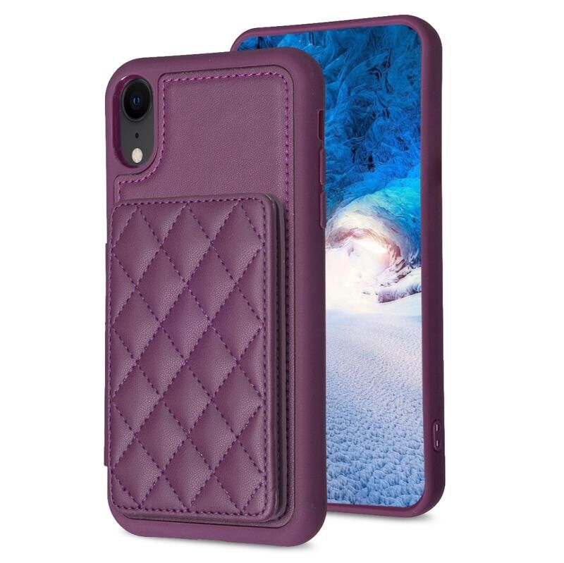 For iPhone XR BF25 Square Plaid Card Bag Holder Phone Case(Dark Purple)