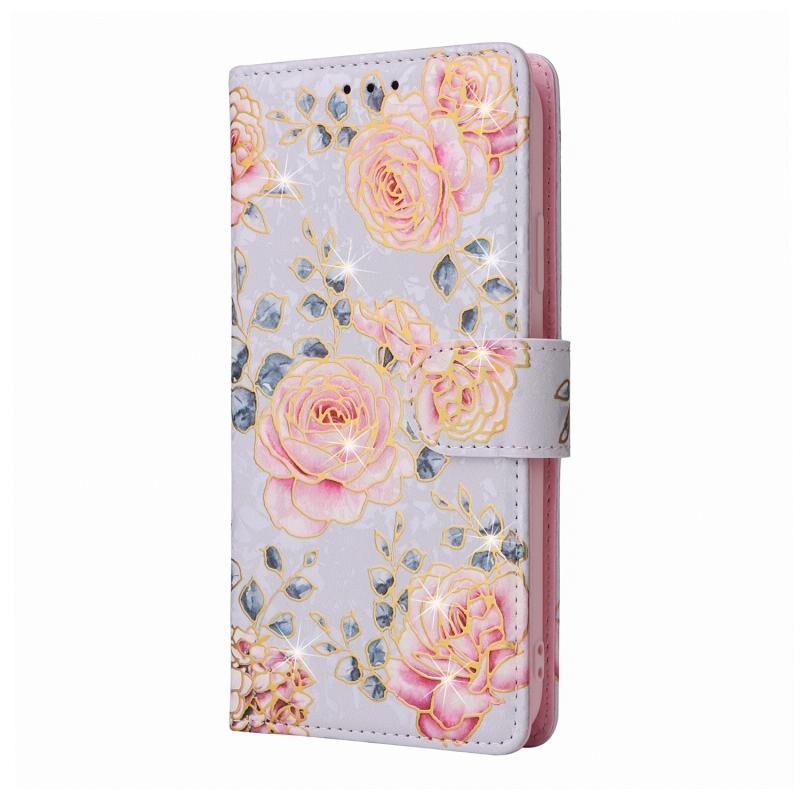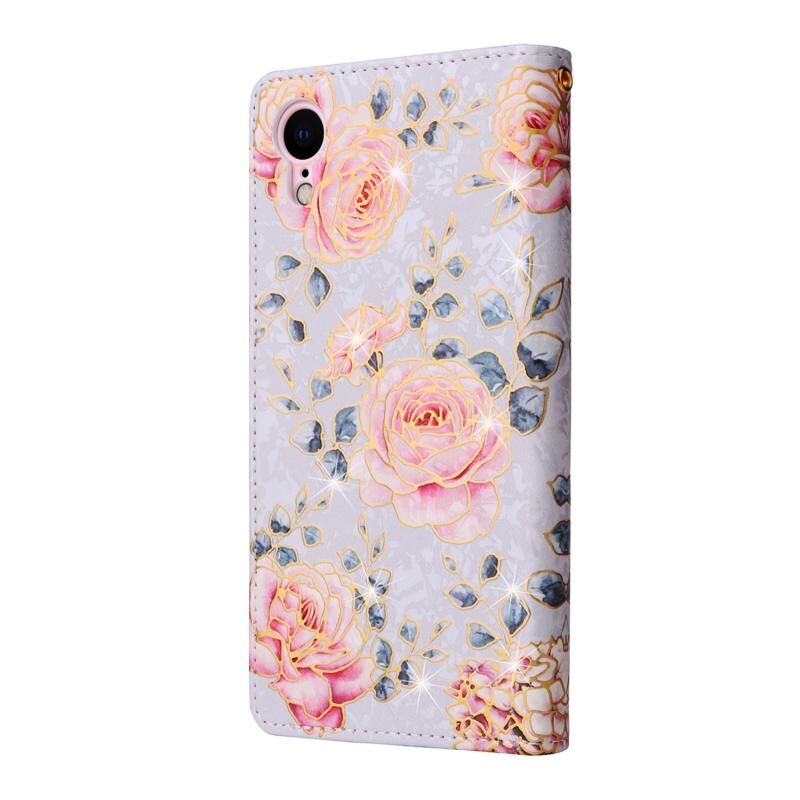 Θήκη δερμάτινη με τεχνολογία RFID και σχέδιο "Bronzing Painting" για iPhone XR (Ροζ Παραστάσεις)