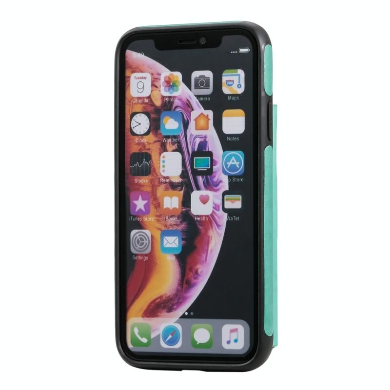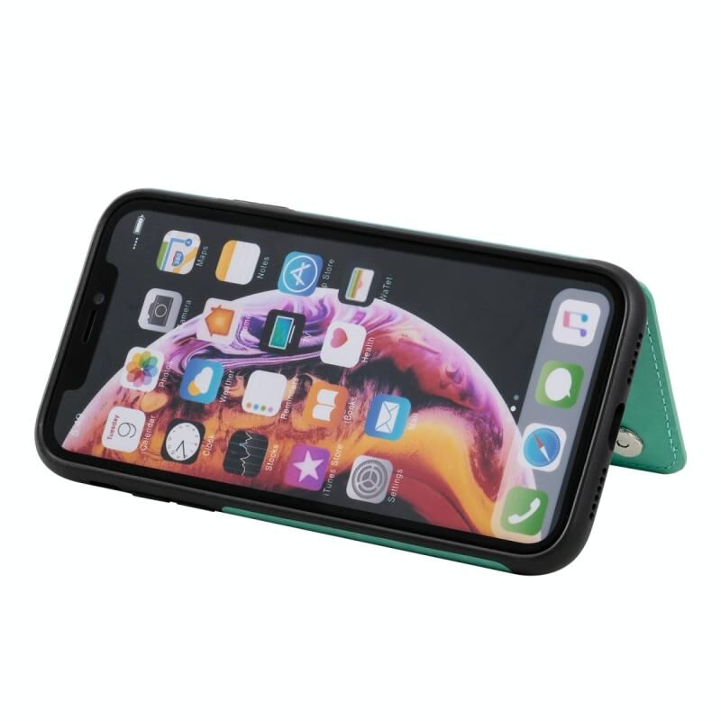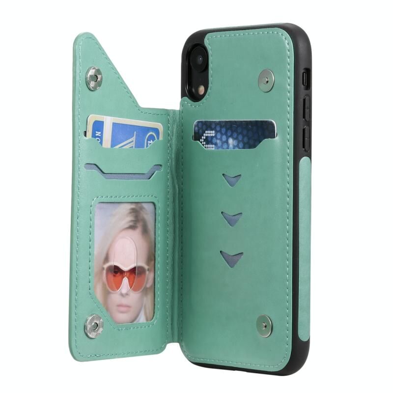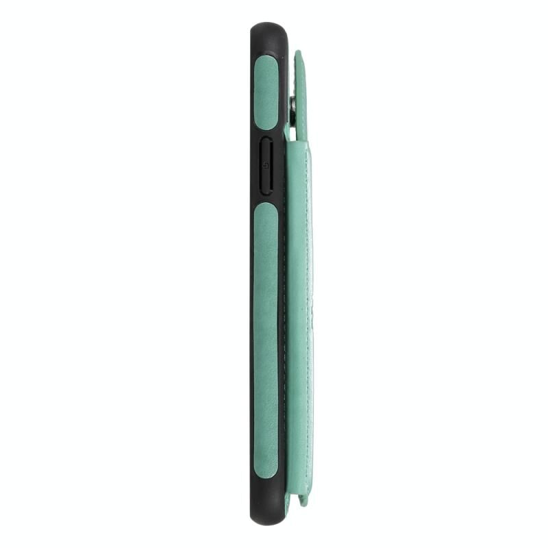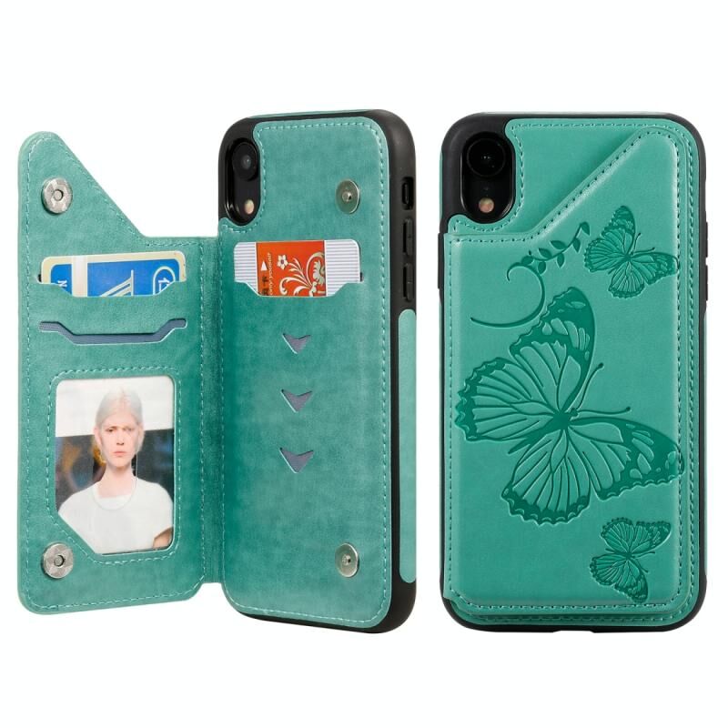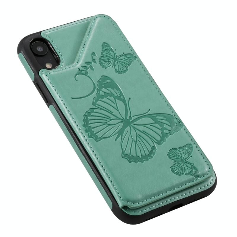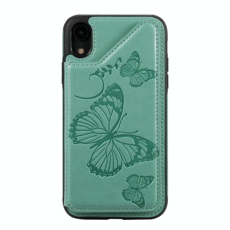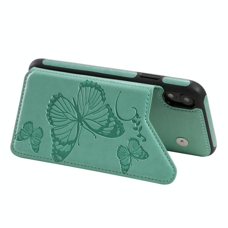 For iPhone XR Butterfly Embossing Pattern Shockproof Protective Case with Holder & Card Slots & Photo Frame(Green)
