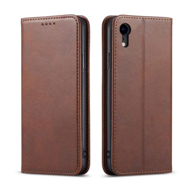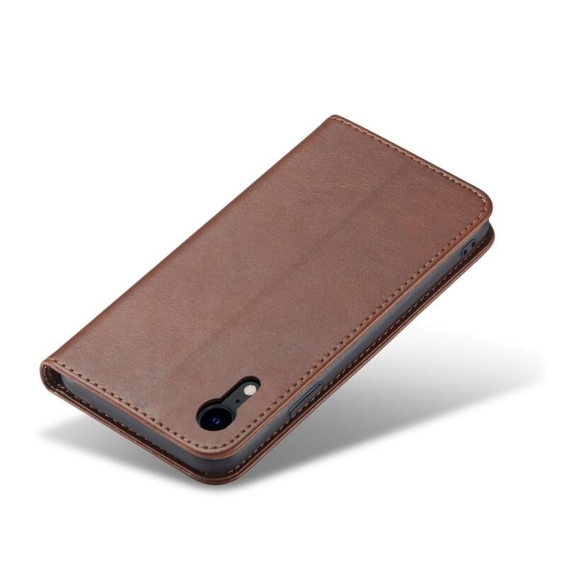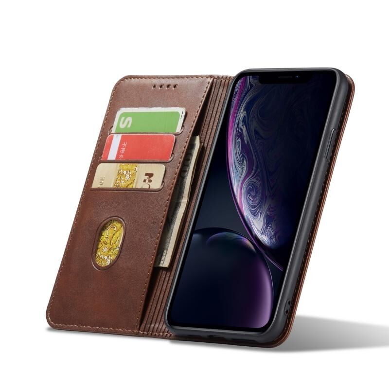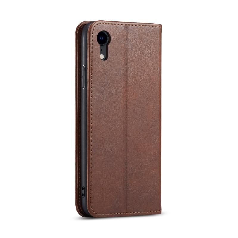Θήκη για iPhone XR με υφή μοσχαριού, μαγνητικό κλείσιμο, οριζόντια, από δέρμα με βάση και θήκες για κάρτες & πορτοφόλι (Μαύρο)
