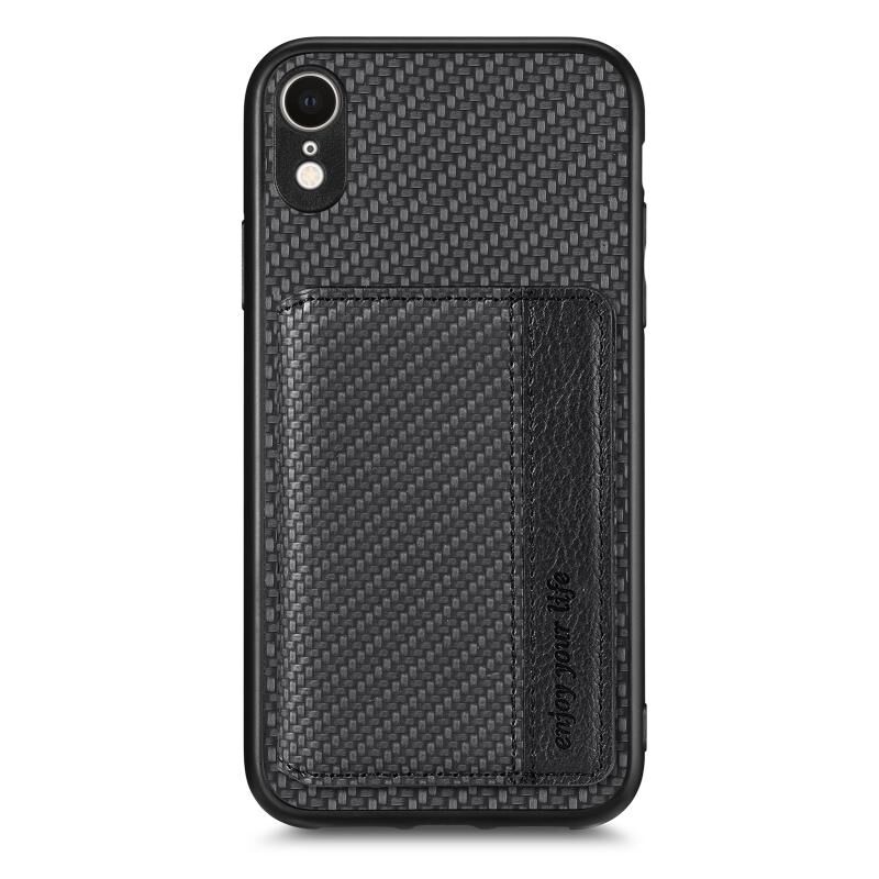 Θήκη τηλεφώνου για iPhone XR από ανθρακονήματα με μαγνητική θήκη καρτών (Μαύρο)